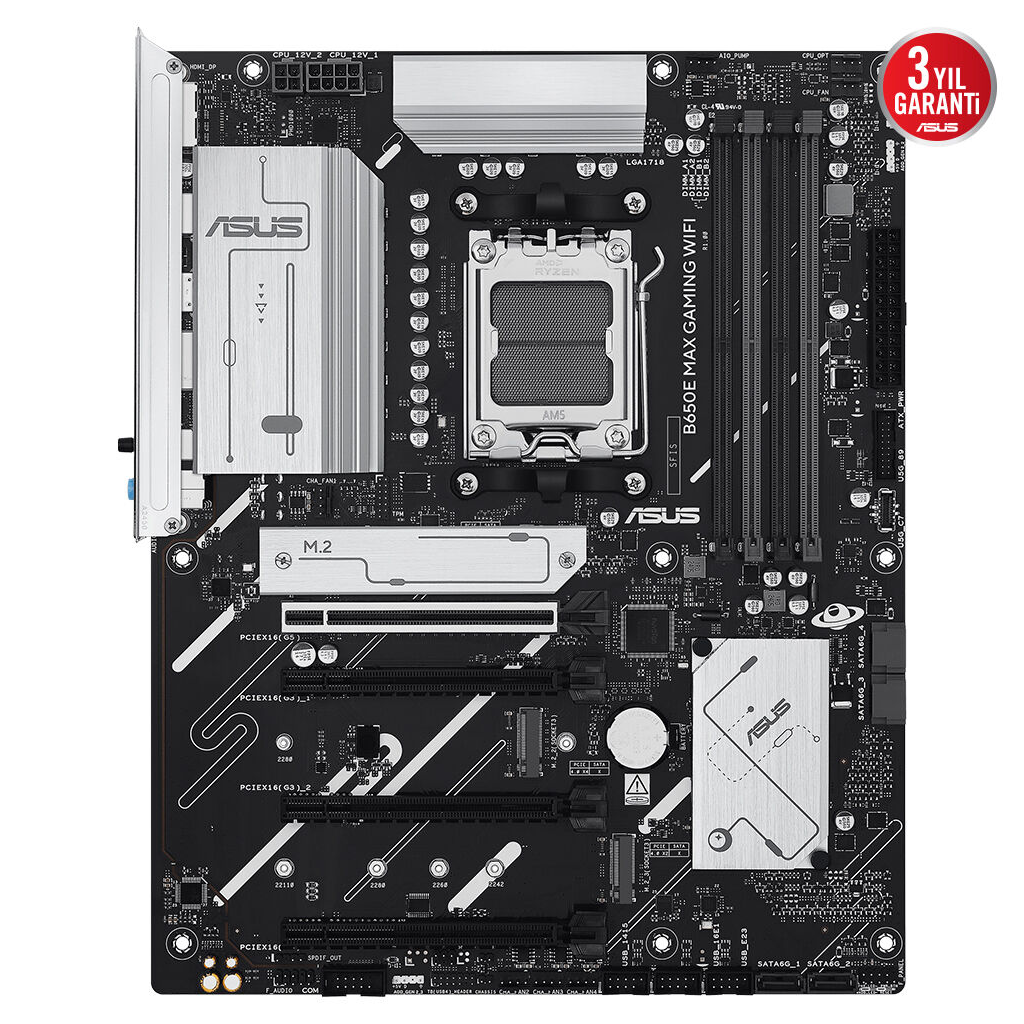 ASUS B650E MAX GAMING WIFI, 4xDDR5, 3xM.2, DP, HDMI, Type-C, Wi-Fi 6E, Bluetooth v5.3, AM5 Soket Gaming Anakart