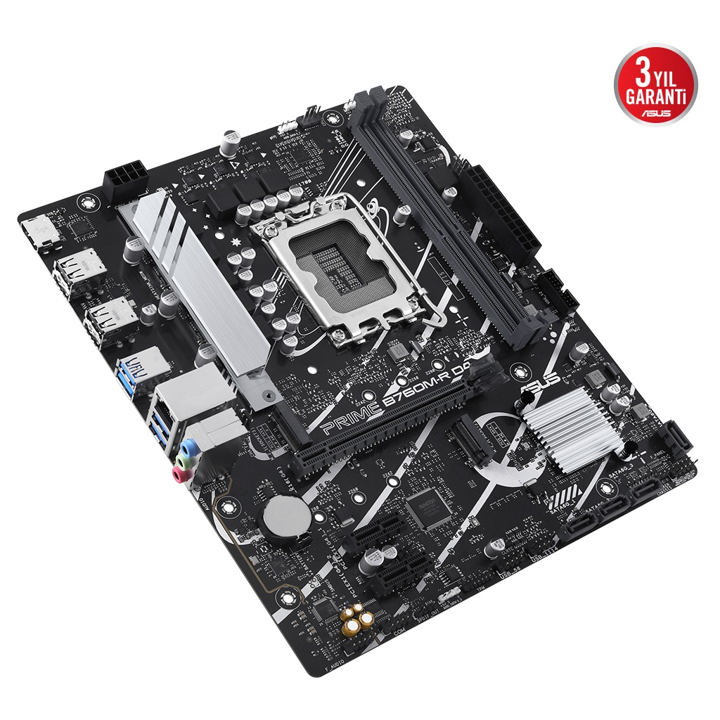 ASUS PRIME B760M-R D4, 2xDDR4, 2x M.2, HDMI, 12-13-14.Nesil, LGA1700 Soket, Anakart
