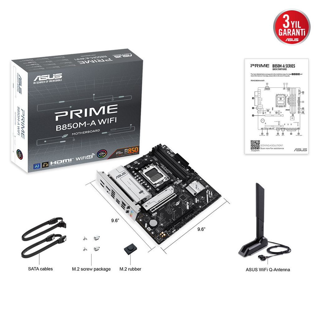 ASUS PRIME B850M-A WIFI 8000MHz DDR5 Soket AM5 M.2 HDMI DP mATX Anakart
