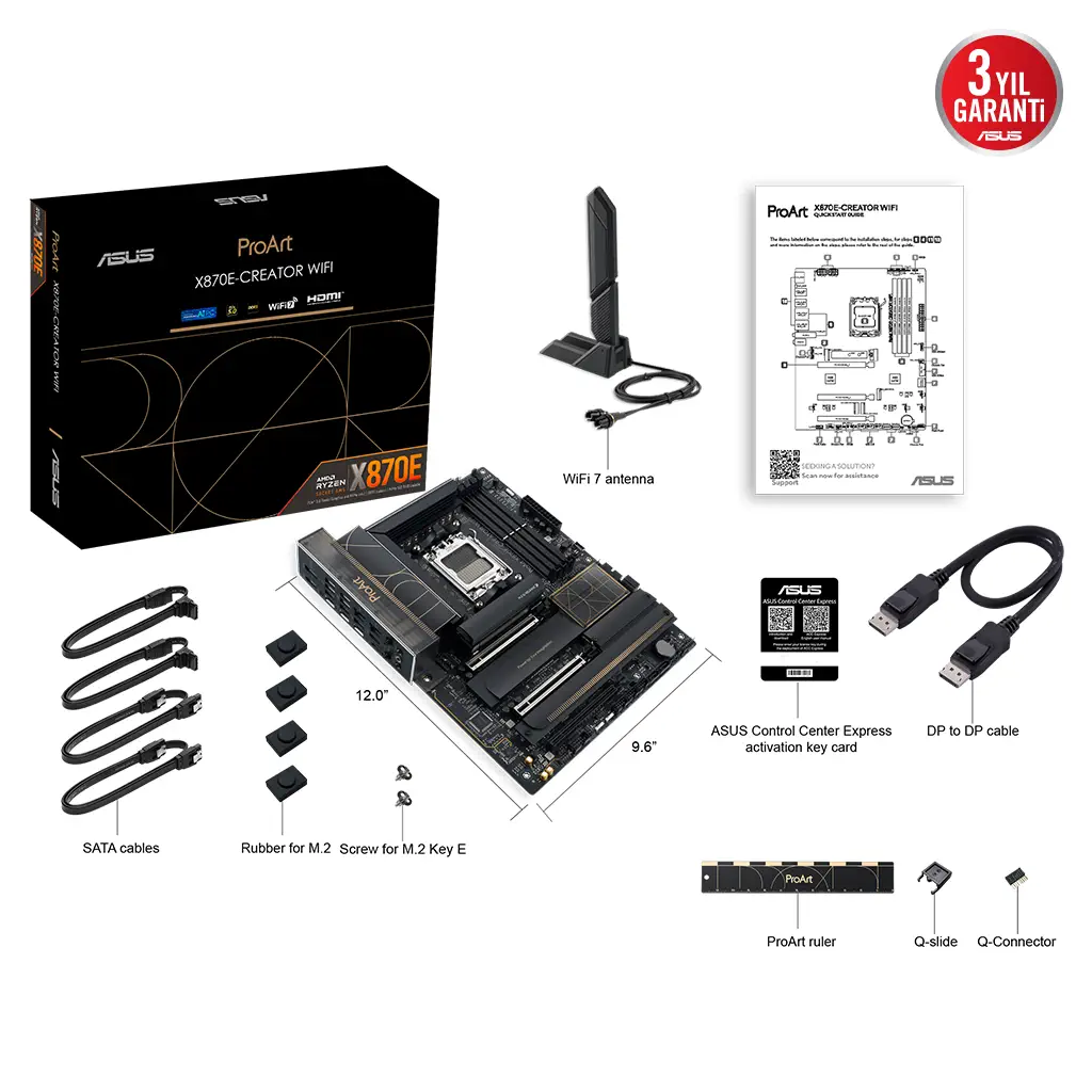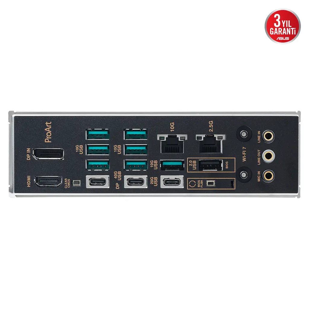 ASUS PROART X870E-CREATOR WIFI, 4xDDR5, 4xM.2, HDMI, DP, Type-C, PCIe 5.0, Wi-Fi 7, Bluetooth v5.4, AM5 Soket GAMING Anakart