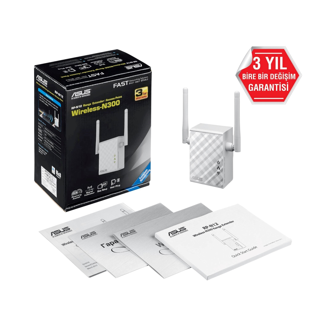 ASUS RP-N12 Kablosuz-N300 Menzil Arttırıcı / Access Point / Medya Köprüsü (Roaming Özelliği)– Harici anten, kablosuz sinyal alanını arttırır ve ağınızı her yere yayar |