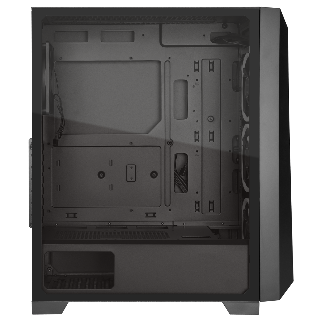 ŞIK TASARIMTrapez temperli cam, doğal hava akışı için mükemmel bir ortam yaratırken, kasanın keskin ve modaya uygun stilini daha da geliştirmek için ARGB fanlarının parlaklığını hafifçe yansıtıyor. |