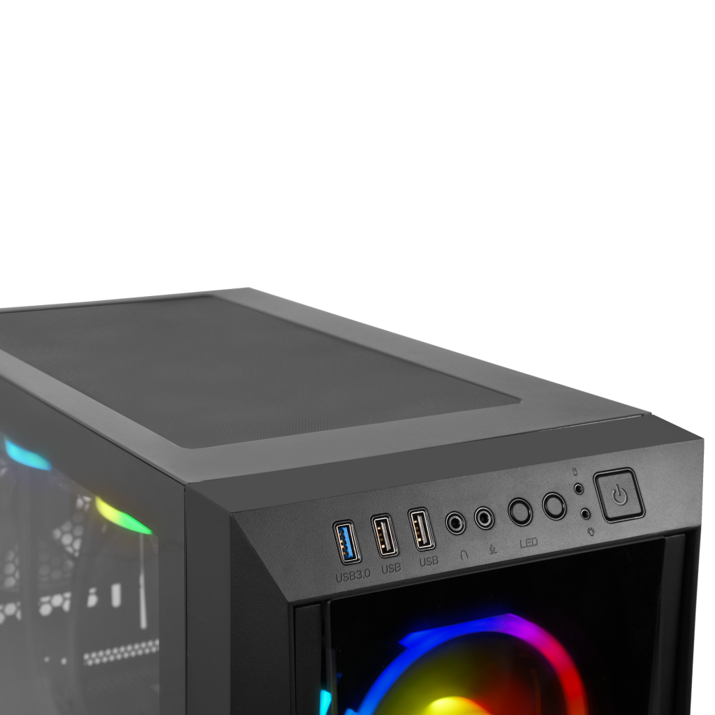 TALOS M1 ELITE, güçlü hava akışına izin veren ön trapez temperli cam panele sahip bir mid-tower kasadır. Kasa, üç yerleşik 120 mm trio-ring ARGB fandan oluşur ve bir PSU örtüsü ve temperli cam pencere ile daha iyi bir modlama deneyimi sağlar. |