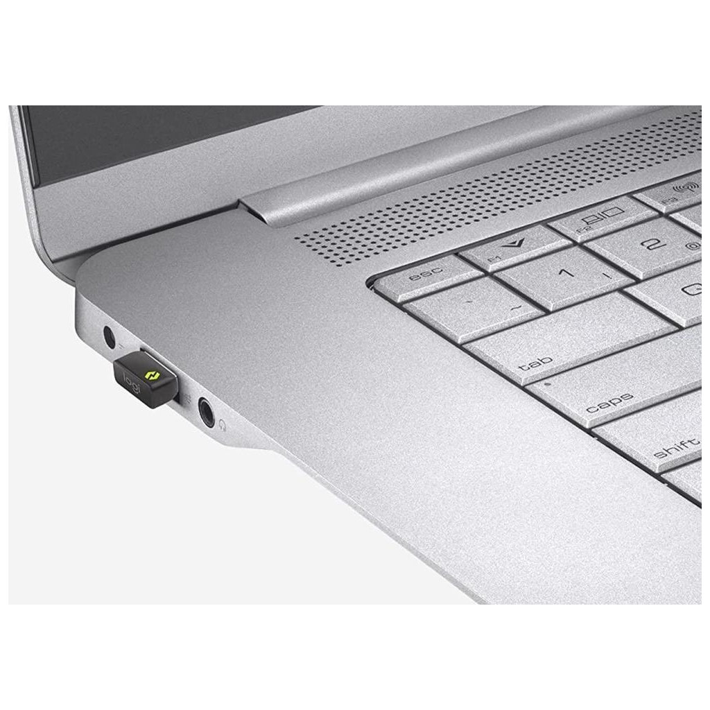 HARİCÎ VE KULLANIMI KOLAYİhtiyacınız olan tek şey bir bağlantı noktası. Alıcıyı taktığınızda çıkarmanıza gerek kalmaz. Dizüstü bilgisayarınızı ve bağlı Logi Bolt cihazlarınızı farklı çalışma alanlarına götürebilir ve çalışmaya devam edebilirsiniz.