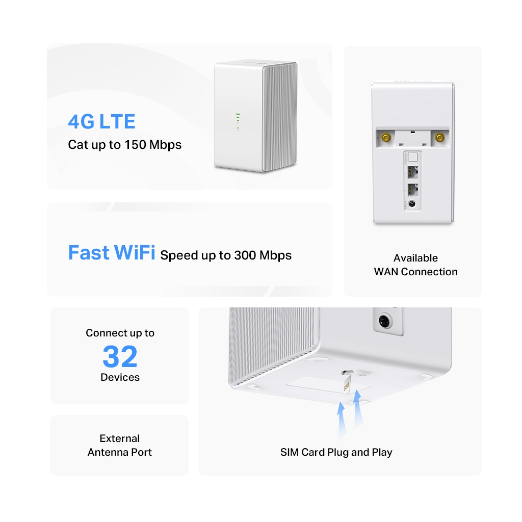 MERCUSYS MB110-4G, N300, 2Port, 300Mbps, Sim Kart Yuvalı, 4G-LTE, Router