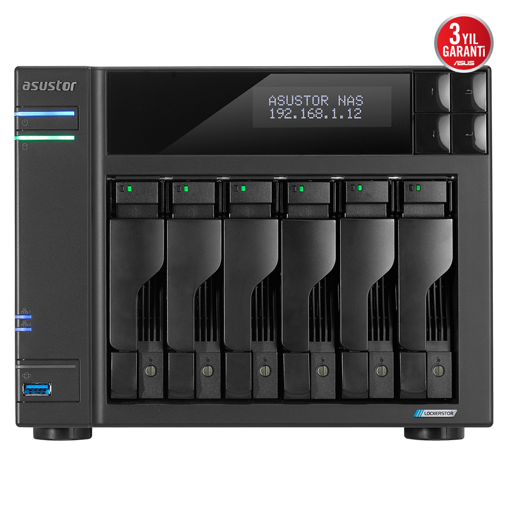 ASUSTOR AS6706T, 8Gb DDR4 Ram, 6 Yuvalı (6x22TB Destek), 4xM.2, PCI-e, 2×2.5GbE Network, 3xUSB 3.2, Tower NAS (Yedekleme) Cihazı