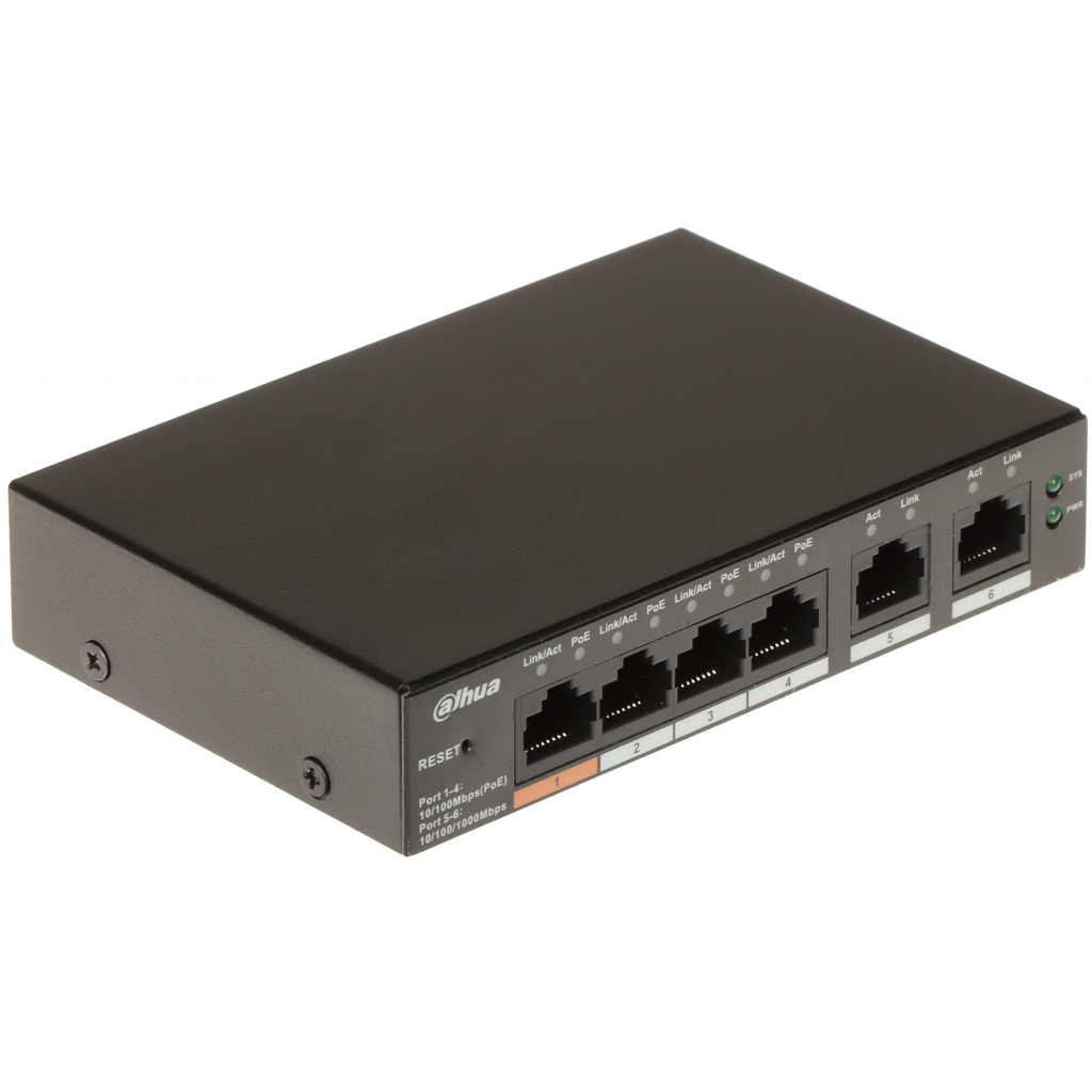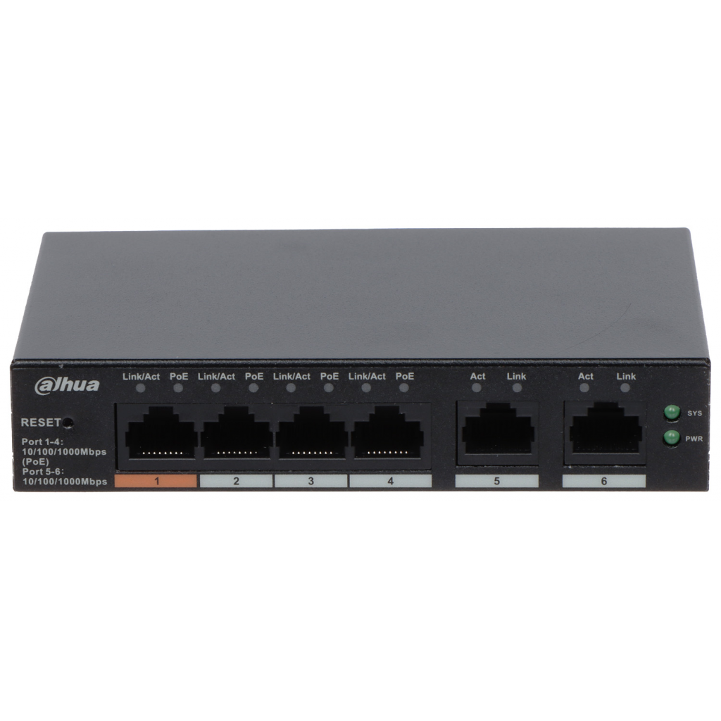 DAHUA CS4006-4ET-60, 4 Port, Megabit, PoE 60W, 2 Port Uplink, Cloud Yönetilebilir, Switch