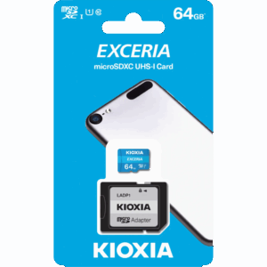 KIOXIA 64GB Exceria, LMEX1L064GG2, UHS-1, CL10, 100Mb/s, MicroSD Kart Bellek (SD Adaptörlü)