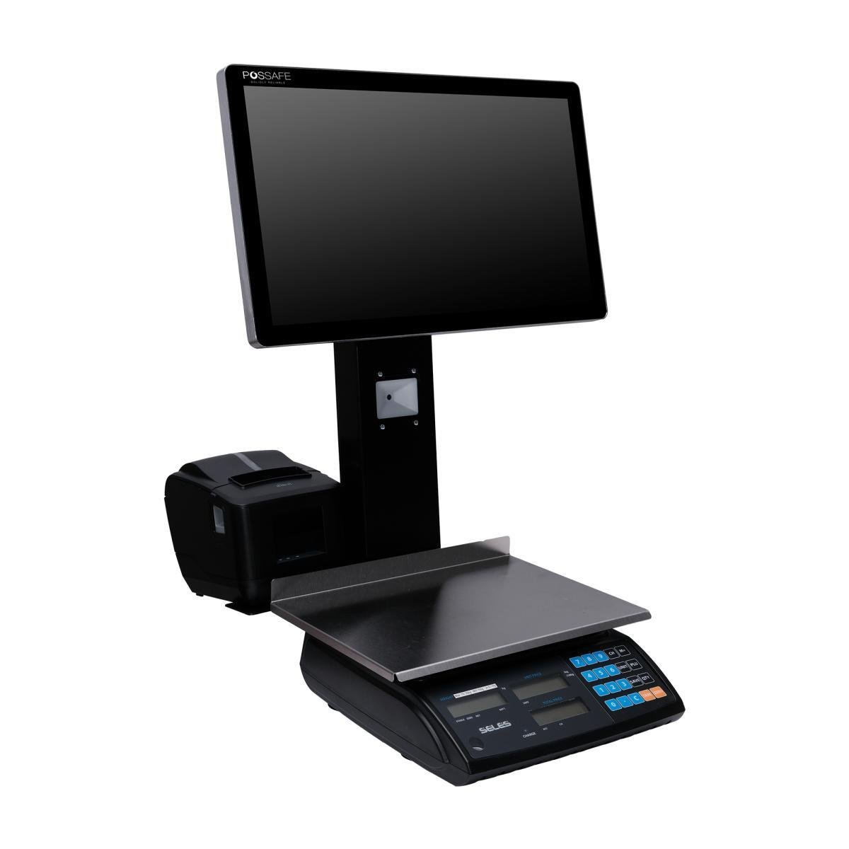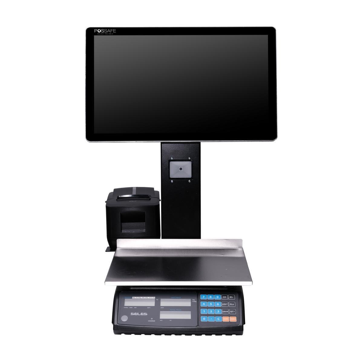 Possafe Terazili Pos Seles, 15-30 kg ağırlık kapasitesine sahip entegre terazi ve 10 noktalı kapasitif dokunmatik ekranıyla hem fiyat hesaplama hem de satış işlemlerini kolaylaştırır. Intel® Celeron ve i3/i5 işlemci seçenekleriyle donatılan bu POS, farklı ekran boyutları ve opsiyonel barkod/fiş yazıcı seçenekleriyle ticari işletmelere esnek çözümler sunar.