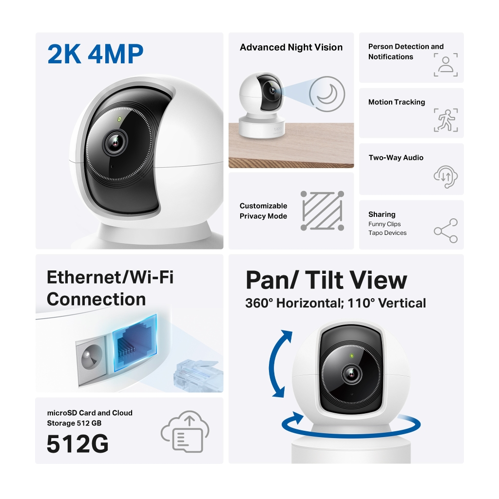 TP-LINK Tapo C202, Bebek/Ev Güvenlik Kamerası, WiFi-Ehernet, 1080P, 12Mt Gece Görüşü, PAN/TILT, iki Yönlü Ses