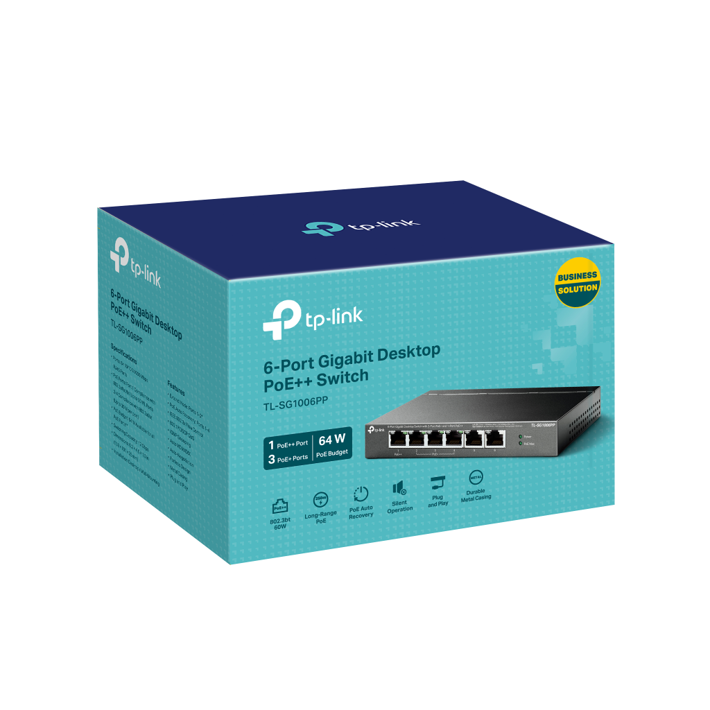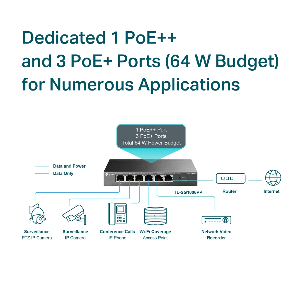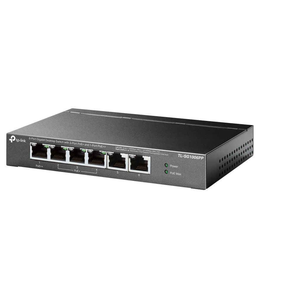 TP-LINK TL-SG1006PP, 6 Port, GigaBit, 4 Port PoE 64W, Yönetilemez, Metal Kasa, Masaüstü Switch