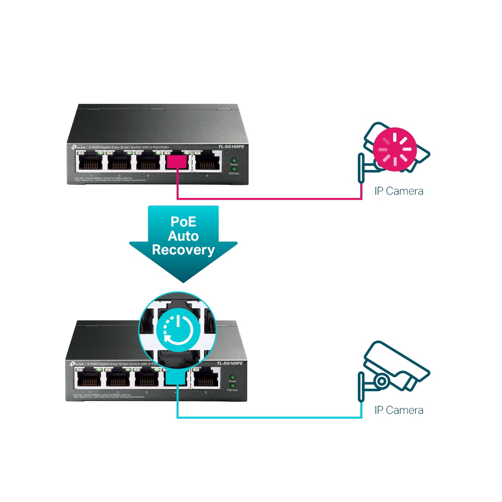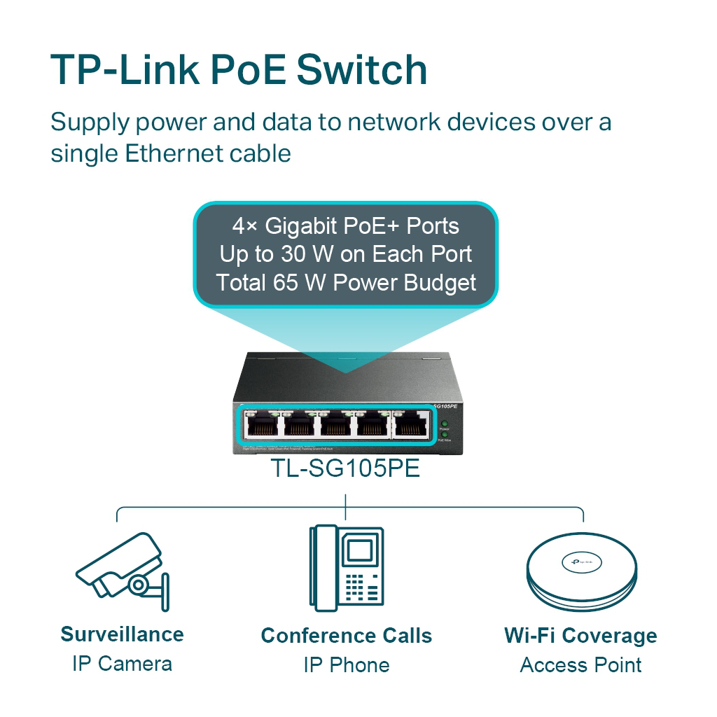 TP-LINK TL-SG105PE, 5 Port, GigaBit, 4 Port Poe, 65W, Easy Smart, Yönetilebilir, Metal Kasa, Masaüstü Switch
