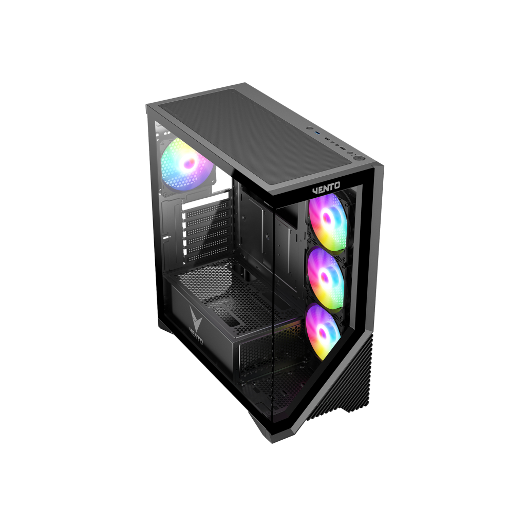 VENTO VG3400S Mid Tower, Siyah, Temperli Cam, RGB, ATX GAMING KASA (PSU YOK)