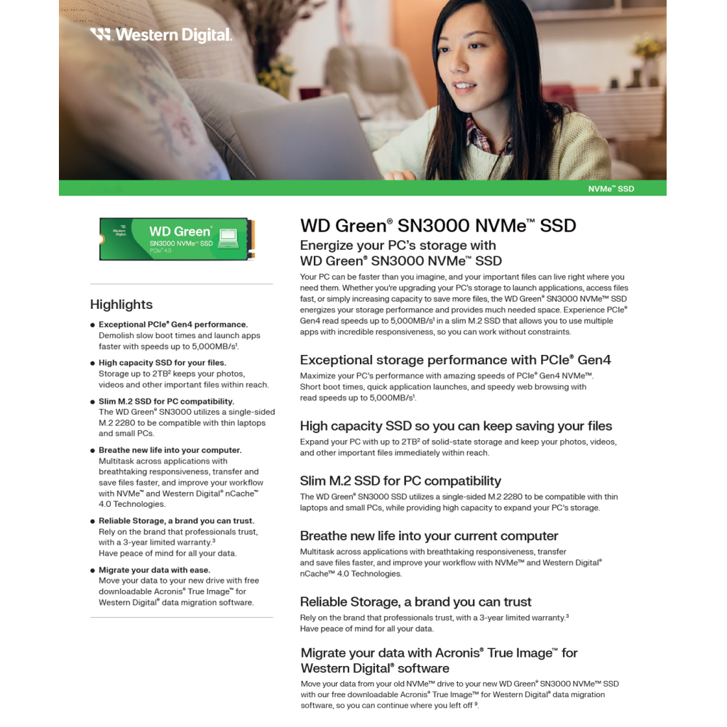 WD GREEN SN3000 NVMe SSD İLE PC DEPOLAMANIZI CANLANDIRIN
