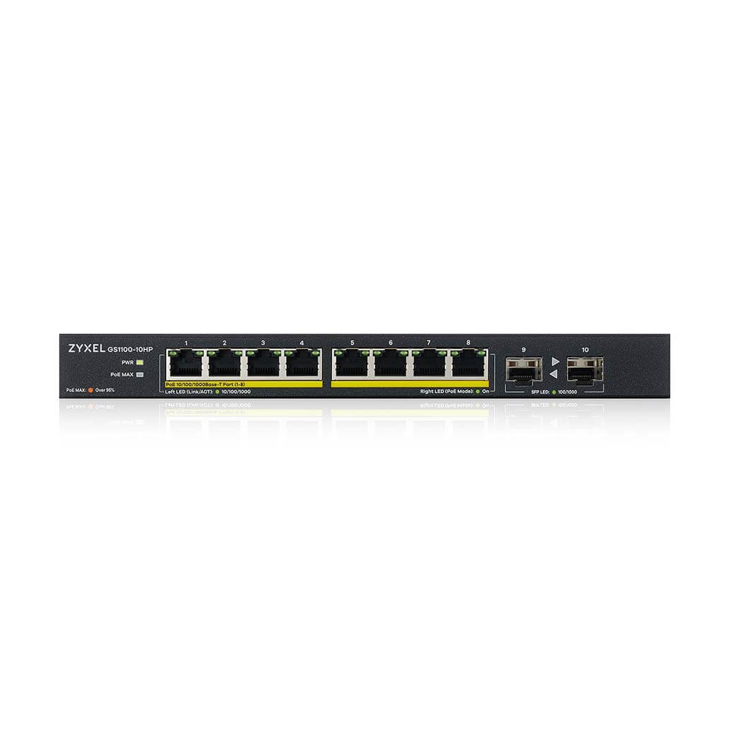 ZyXEL GS1100-10HP, 8 Port, Gigabit, PoE 130W, 2 Port GigaBit SFP, Yönetilemez, Masaüstü Switch